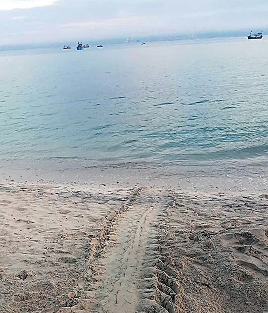 Dấu rùa bò lên bãi đẻ
