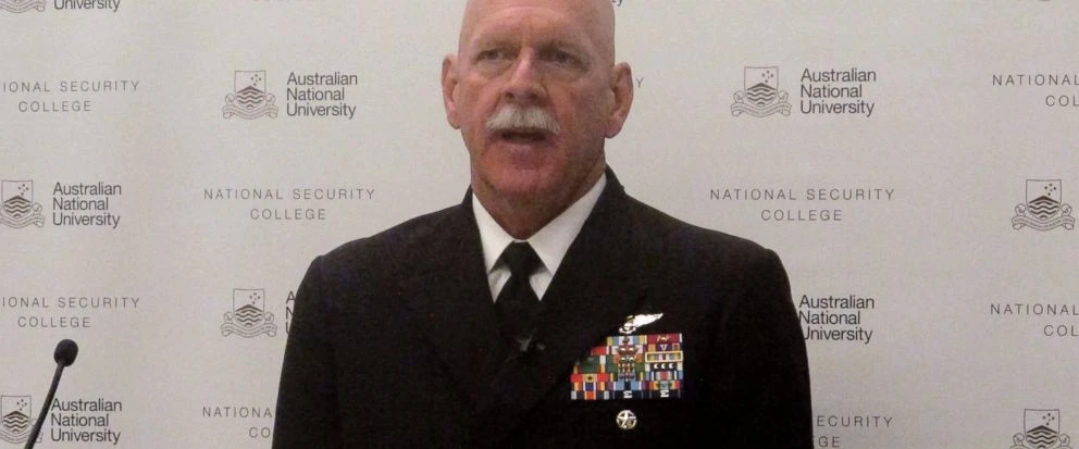 Chỉ huy Hạm đội Thái Bình Dương của Hoa Kỳ, Scott Swift, phát biểu tại hội nghị an ninh của Đại học Quốc gia Úc tại Canberra, Úc. Ảnh: AP