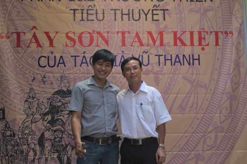 | Nhà văn Vũ Thanh (SN 1956, Bình Định). Ngoài hai bộ tiểu thuyết Én liệng Truông Mây và Nhất thống sơn hà, ông còn là tác giả của trường thi Hòn vọng phu (dài 2.466 câu thơ lục bát) đã được NXB Trẻ cấp phép, in ấn và phát hành năm 2012. Không chỉ là một nhà văn, Vũ Thanh còn được biết đến là một nhạc sĩ với nhiều tác phẩm nổi tiếng mang âm điệu ngọt ngào, da diết như Đắp mộ cuộc tình, Quy Nhơn đôi mắt người xưa, phượng vĩ, Đôi mắt của chị, Phải chi em lấy chồng xa… Hai bộ tiểu thuyết Én liệng Truông Mây và Nhất thống sơn hà được phát hành trên toàn quốc. |