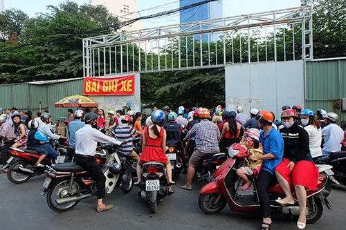 Phóng viên “rà” hết toàn bộ các bãi xe trên tuyến đường này nhưng đều không có chỗ để gửi. Có bãi xe hết chỗ nhưng khách vẫn còn ùn ùn trước cổng ra vào. Gửi xe đã khó, lấy xe ra còn khó hơn. Nhiều người đã phải chờ rất lâu mới lấy được xe ra.