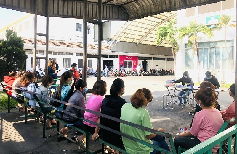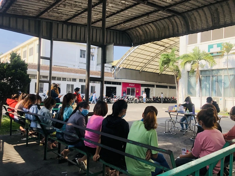 Do dịch bệnh, một số công ty dựng bàn tuyển dụng “dã chiến” để đón lỏng lao động ngay cổng công ty, thay vì tổ chức bài bản như trước đây.