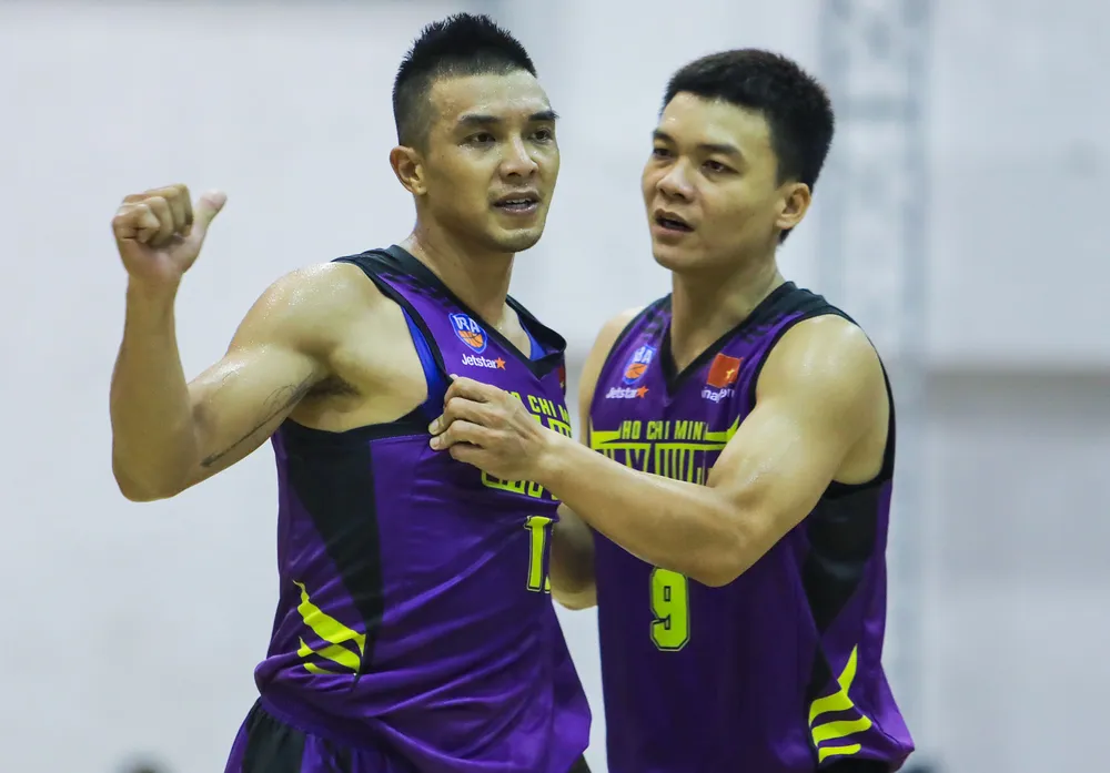 Sau Tuấn Trung, Richardson (áo tím) cũng phạm lỗi cá nhân thứ năm bị buộc phải rời sân.