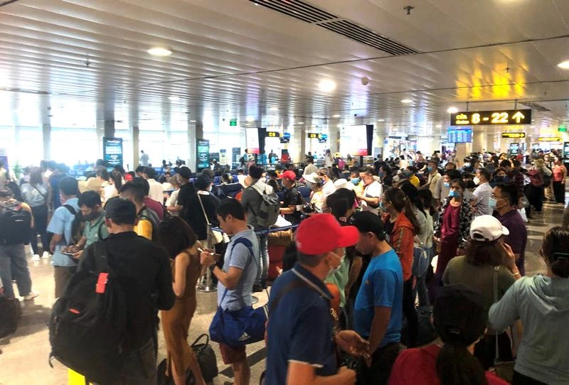 Lượng khách nội địa đi lại bằng đường hàng không tại sân bay Tân Sơn Nhất rất nhộn nhịp. Ảnh: P.ĐIỀN