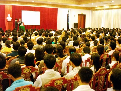 Một buổi nghe thuyết trình về công cuộc "làm giàu nhanh chóng" nhất. Ảnh: tienphong