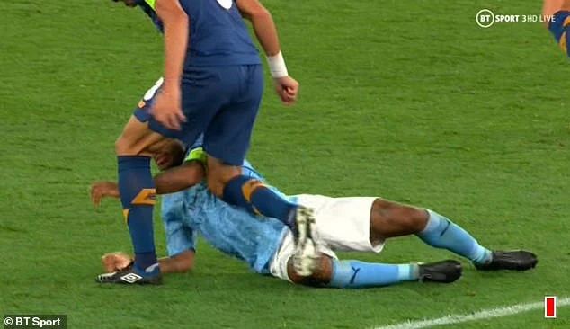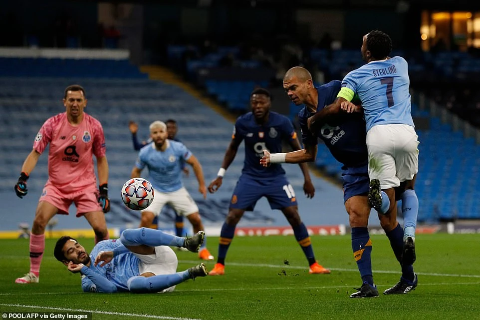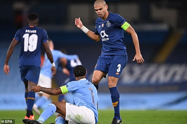 Trong tình huống không có gì nguy hiểm, Pepe chỉ cần áp sát Sterling sẽ khép được góc sút của tiền đạo người Anh. Nhưng cựu cầu thủ 37 tuổi của Real Madrid mang biệt danh “đồ tể” này lại phạm lỗi không cần thiết với Sterling khiến đội nhà chịu quả phạt 11m.