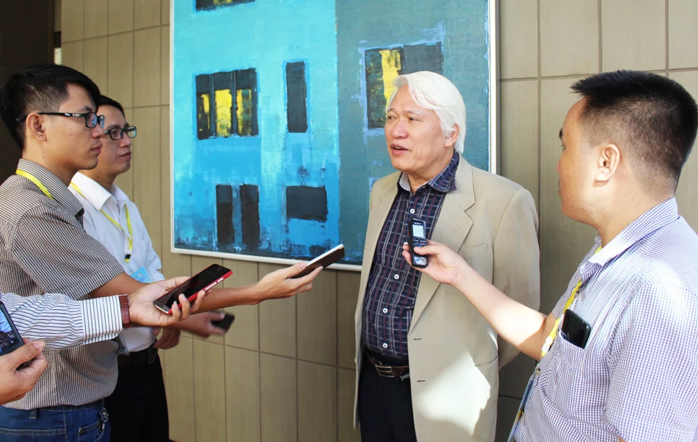 GS Nguyễn Chu Hồi trả lời báo chí bên lề hội thảo. Ảnh: TẤN LỘC