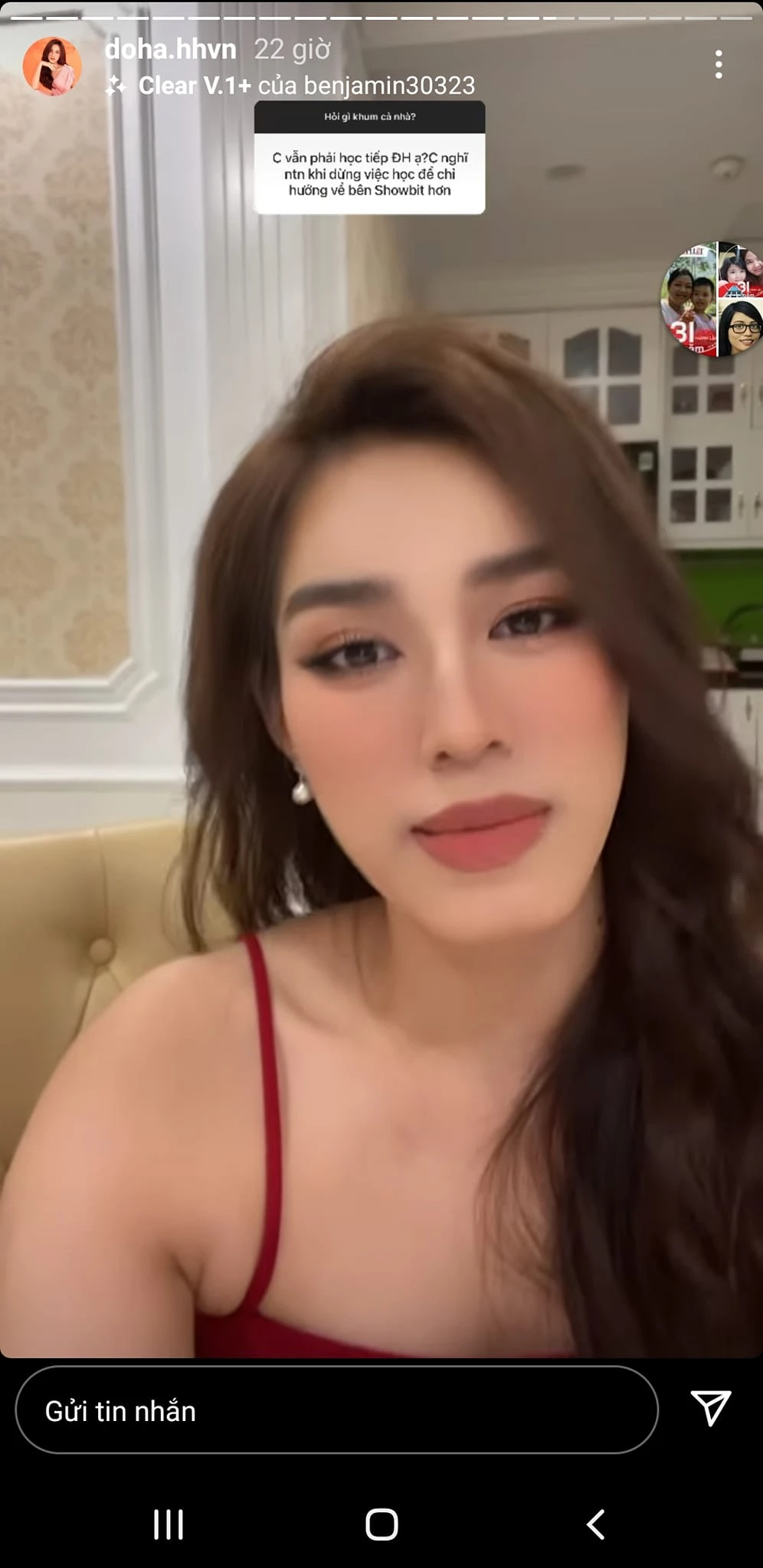 Theo đó, khi được một khán giả hỏi về cảm nghĩ khi tạm dừng học tập để theo đuổi showbiz, Hoa hậu Đỗ Thị Hà cho biết cô vẫn sẽ đi học và phải theo đuổi con đường học vấn để cho "bằng bạn bằng bè".