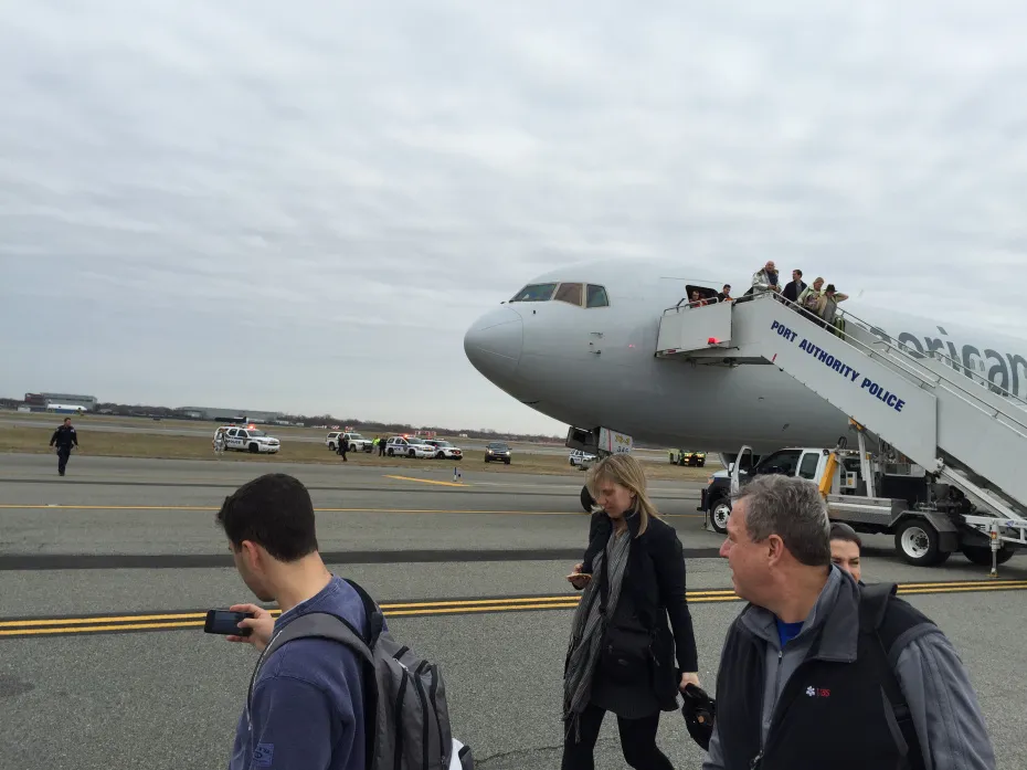Hành khách trên chuyến bay số 67 của hãng American Airlines khởi hành từ Barcelona, quá cảnh tại New York, đã được sơ tán ngay trên đường băng.