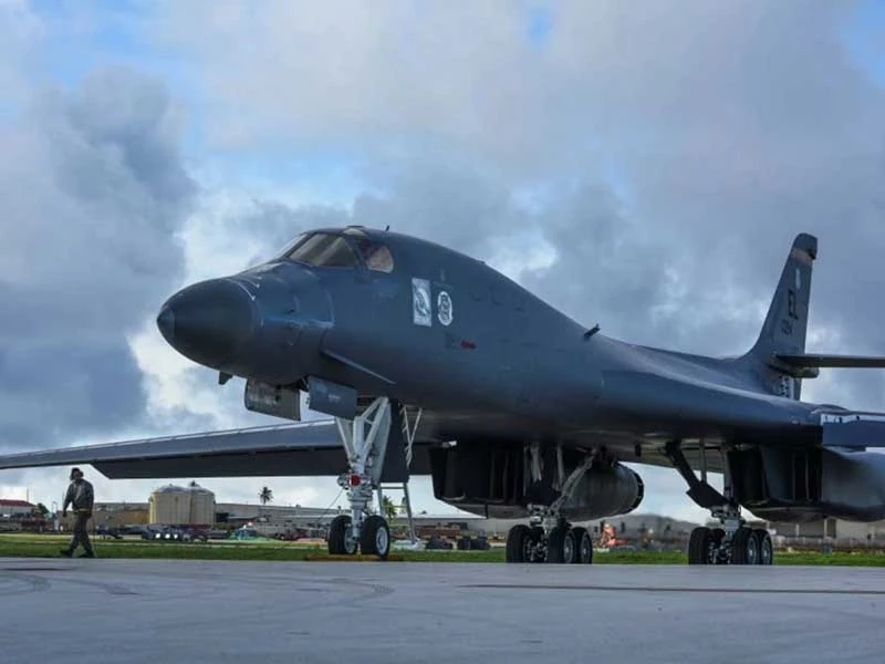 Máy bay ném bom B-B1 Lancer chuẩn bị cất cánh từ căn cứ không quân Andersen ở đảo Guam đến Nhật Bản tập trận ngày 8-8. Ảnh: US AIR FORCE