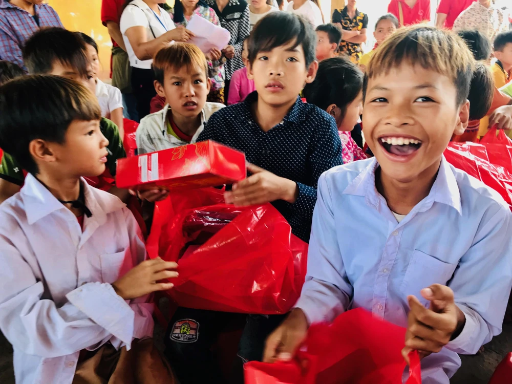 Niềm vui của các em sau khi nhận những phần quà ấm áp.