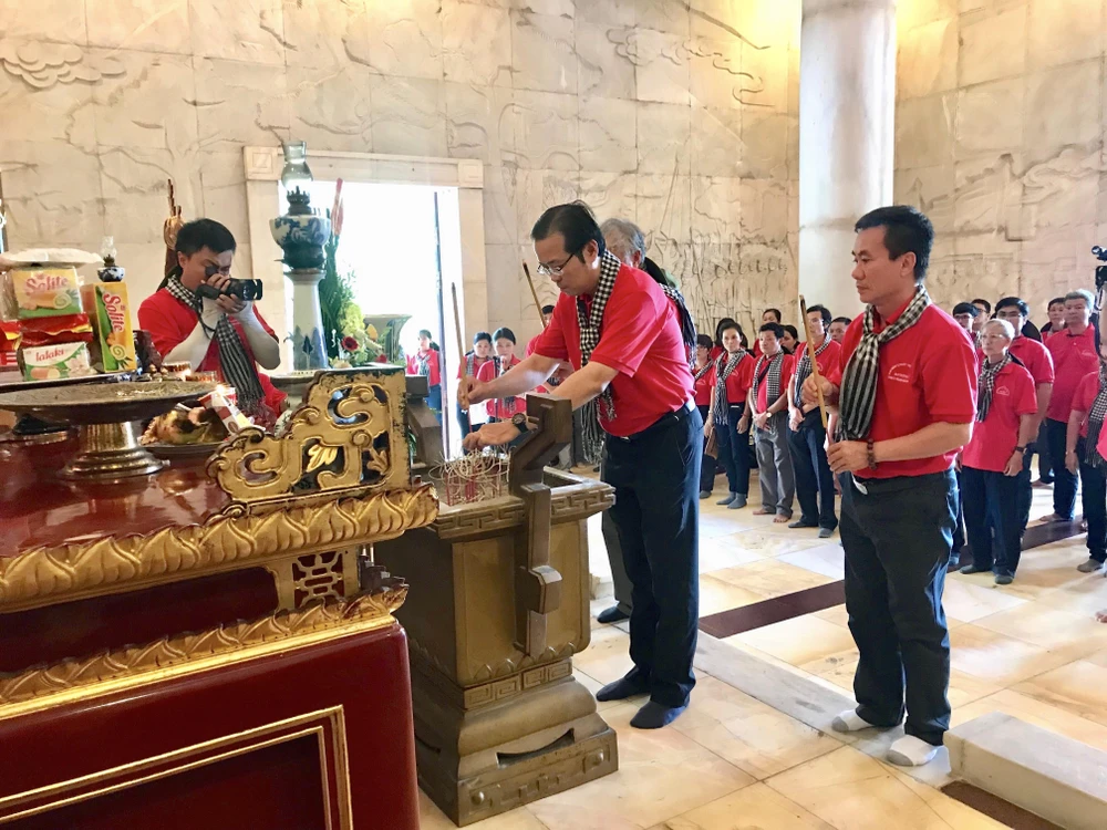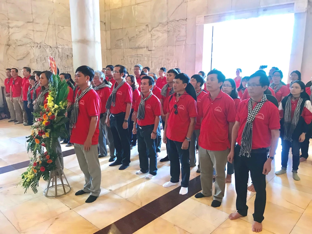 Đoàn tới dâng hương, dâng hoa tưởng nhớ Chủ tịch Hồ Chí Minh.