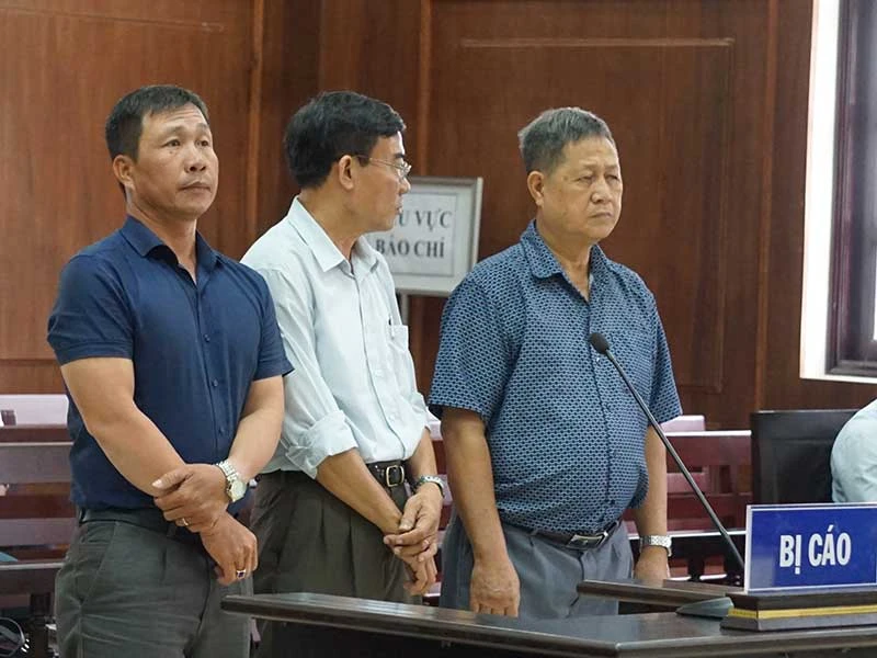 Các bị cáo tại phiên tòa phúc thẩm lần hai ngày 29-10 (bị cáo - kỹ sư Bùi Hải Nhân bìa trái). Ảnh: NGÂN NGA