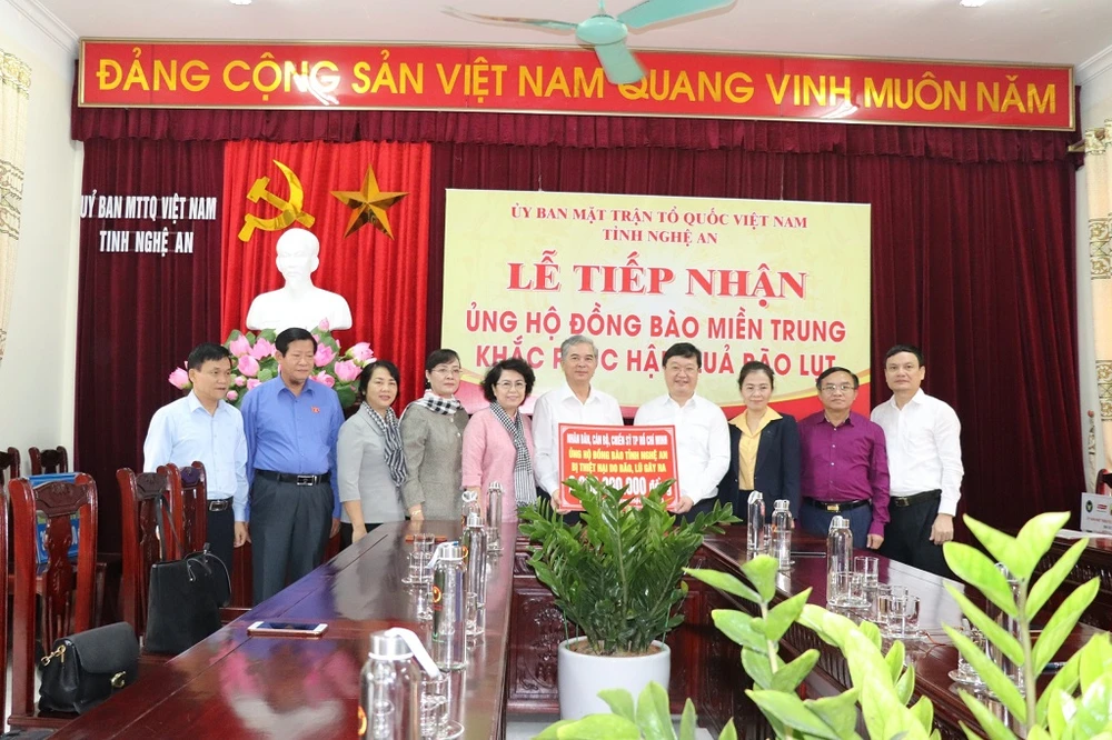 Đoàn đại biểu TP.HCM do Phó Chủ tịch UBND TP.HCM Ngô Minh Châu dẫn đầu đến thăm, hỗ trợ cho đồng bào tỉnh Nghệ An. Ảnh: Uỷ ban MTTQ Việt Nam TP.HCM