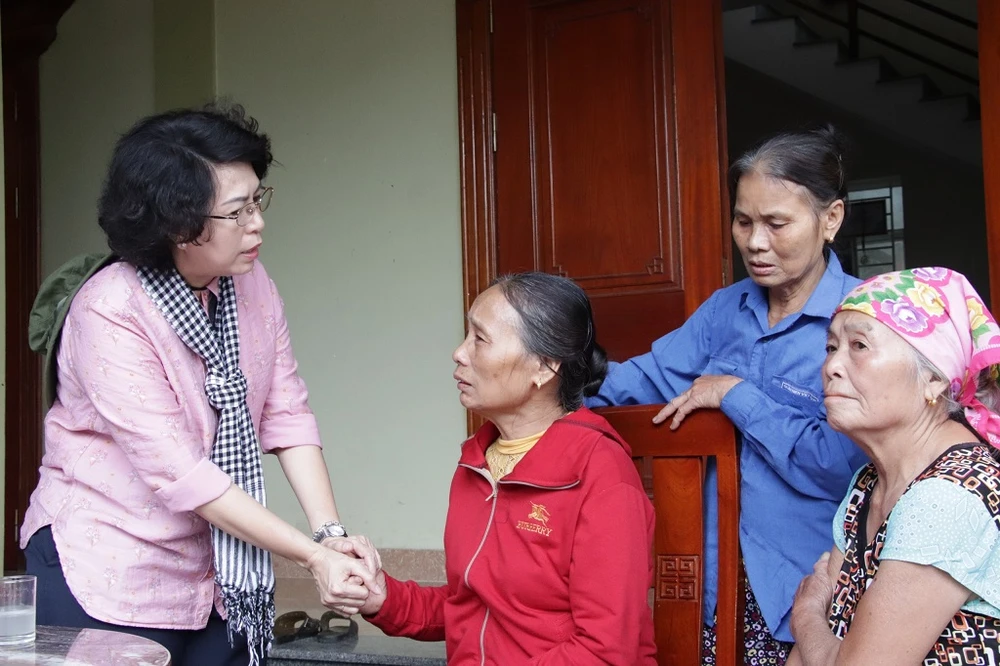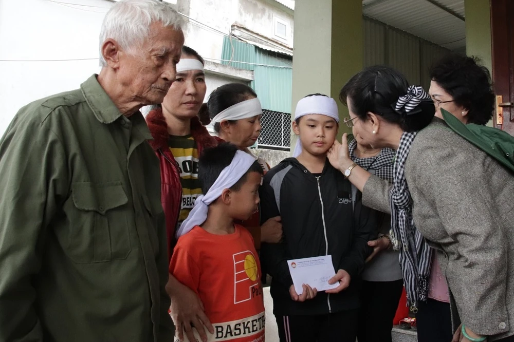 Bà Tô Thị Bích Châu, Chủ tịch Uỷ ban MTTQ Việt Nam TP.HCM động viên gia đình. Ảnh: Uỷ ban MTTQ Việt Nam TP.HCM