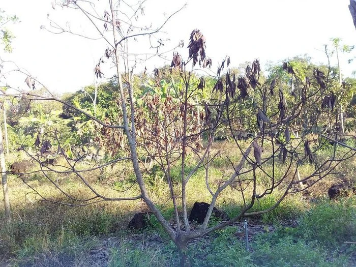 Vườn bơ của gia đình ông Phương bị đầu độc dần chết gần hết. Ảnh: VH