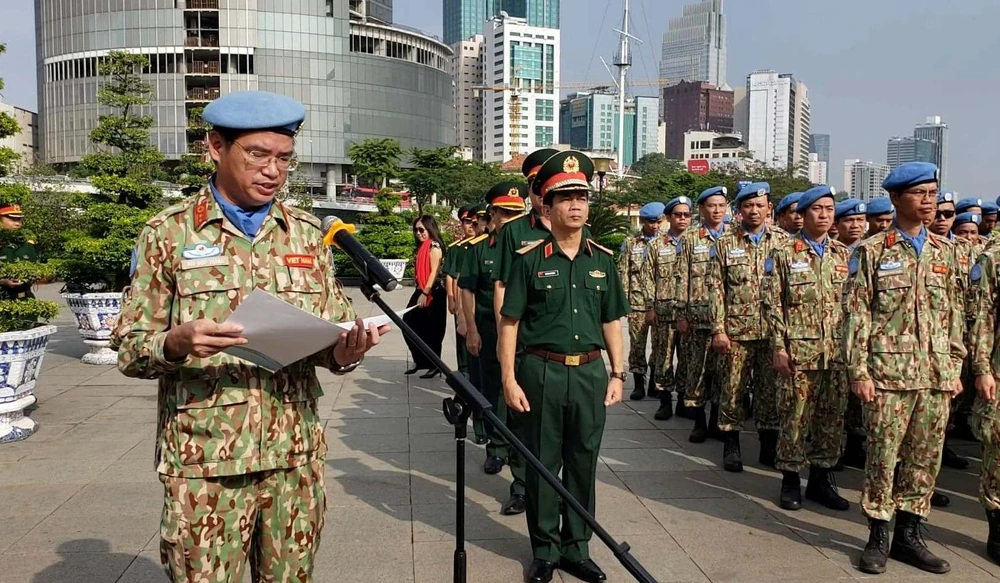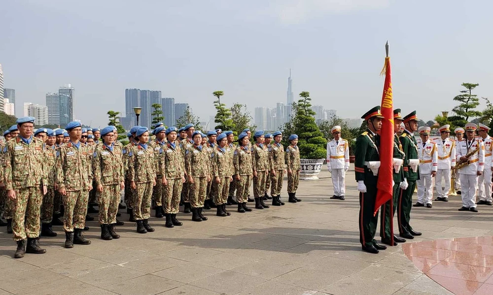 Ngày 5-12, tại bến Nhà Rồng, TP.HCM, Cục Gìn giữ hòa bình Việt Nam đã tổ chức lễ báo công dâng Bác trước Tượng đài Chủ tịch Hồ Chí Minh sau khi đoàn cán bộ của Bệnh viện dã chiến cấp 2 số 1 hoàn thành nhiệm vụ tham gia hoạt động giữ gìn hòa bình của Liên Hiệp Quốc trở về.