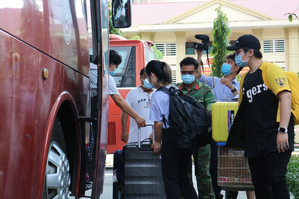 Đội ngũ cán bộ, chiến sĩ ở Trường Quân sự Quân khu 7 hỗ trợ người dân trong sinh hoạt những ngày cách ly tập trung do dịch COVID-19. Ảnh: THANH TUYỀN