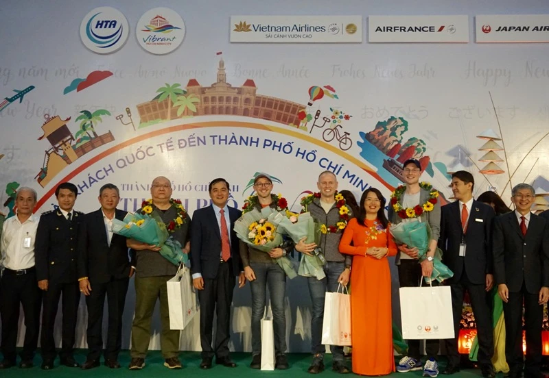 Theo đó, những vị khách trên chuyến bay quốc tế JL079 của Hãng hàng không Japan Airlines (Nhật Bản) hạ cánh lúc 5 giờ 50 và chuyến bay quốc tế VN2106 của Hãng hàng không Vietnam Airlines liên doanh với Hãng hàng không Air France (Pháp) hạ cánh lúc 7 giờ 10 tại Sân bay quốc tế Tân Sơn Nhất. Các vị khách đã nhận được niềm vui bất ngờ với sự tiếp đón nồng hậu của ngành du lịch thành phố.