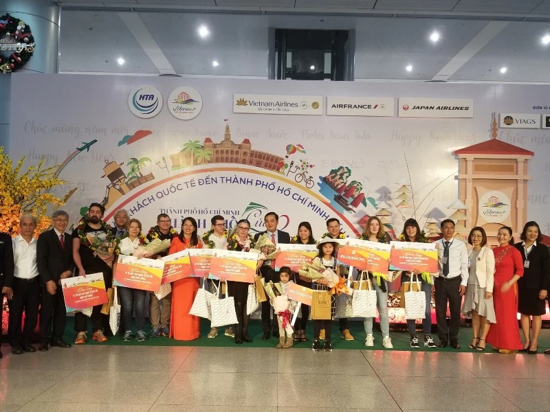Sáng 1-1-2020, Sở Du lịch TP.HCM phối hợp cùng Hiệp hội Du lịch thành phố, các hãng hàng không tổ chức lễ đón đoàn khách quốc tế đến TP.HCM đầu năm mới 2020.