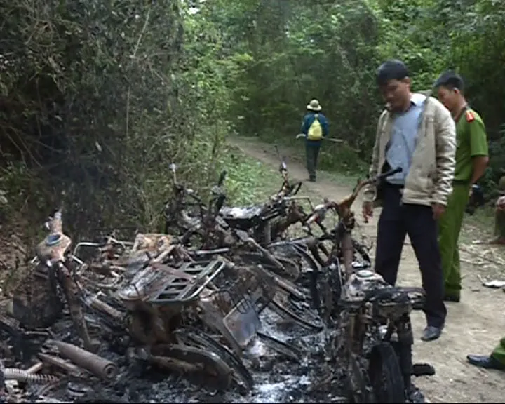 Thông tin ban đầu, khi lực lượng bảo vệ rừng vào khu vực trên thì phát hiện và phá bỏ năm hầm than, đồng thời thu giữ nhiều dụng cụ để chặt phá rừng làm than của các đối tượng phá rừng. Lợi dụng lúc đoàn kiểm tra đang thực hiện nhiệm vụ thì “lâm tặc” đã gom chín xe máy lại và đốt cháy toàn bộ.