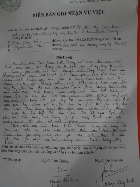 Tuy nhiên, ngay sau khi đoàn kiểm tra ra về, tình trạng xả nước thải lại tiếp diễn. Chủ đầu tư hạ tầng KCN phải tổ chức ghi hình làm bằng chứng, đồng thời lập biên bản yêu cầu đại diện Đồn công an KCN Sóng Thần – Dĩ An chứng nhận để có cơ sở kiến nghị cơ quan chức năng xử lý vụ việc.