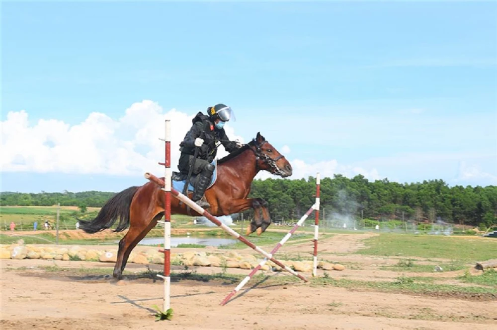 Các bài thao luyện như kỵ binh đi đội hình tuần tra, kiểm soát, vận chuyển hàng hóa, quân trang, quân dụng, vượt địa hình, cứu nạn, cứu hộ; phục vụ lực lượng CSCĐ giải tán đám đông, cưỡi ngựa bắn súng, cưỡi ngựa truy đuổi đối tượng; chó nghiệp vụ vượt địa hình, vòng lửa, truy bắt đối tượng, đánh hơi ma túy...