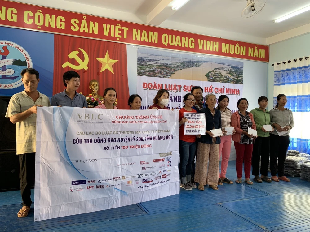 Cùng đi với đoàn còn có Câu lạc bộ Luật sư thương mại quốc tế, thuộc Liên đoàn luật sư Việt Nam (VBLC). VBLC đã ủng hộ 200 triệu đồng để giúp đỡ đồng bào, học sinh ở huyện Lý Sơn, tỉnh Quảng Ngãi và huyện Nam Trà My, tỉnh Quảng Nam.