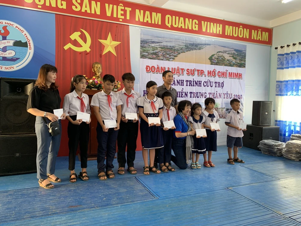 Từ ngày 20 đến 23-11, Tổ công tác thuộc Đoàn Luật sư TP.HCM đã đến một số tỉnh miền Trung để trao tặng quà cứu trợ và học bổng với tổng trị giá 603 triệu đồng. Tổ công tác gồm luật sư Phó Chủ nhiệm Hà Hải; các luật sư Ủy viên Ban Chủ nhiệm: Phan Thị Hồng Điểm, Nguyễn Bảo Trâm, Nguyễn Thành Công, Nguyễn Văn Đức và luật sư Bí thư Đoàn Thanh niên Ngô Việt Bắc.