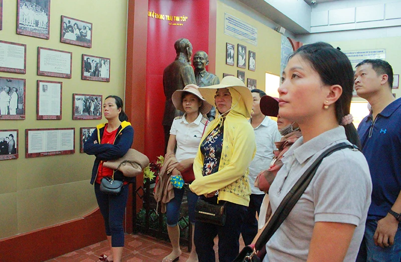 Người dân tham quan tìm hiểu những kỷ vật, hình ảnh của Bác Hồ.