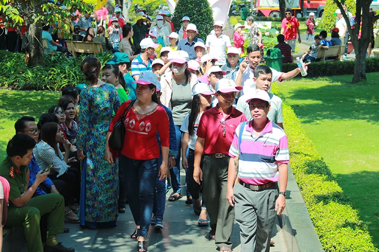 Cùng lúc này, tại Tượng đài Chủ tịch Hồ Chí Minh tại phố đi bộ Nguyễn Huệ (quận 1), nhiều đoàn cũng đến viếng Người.