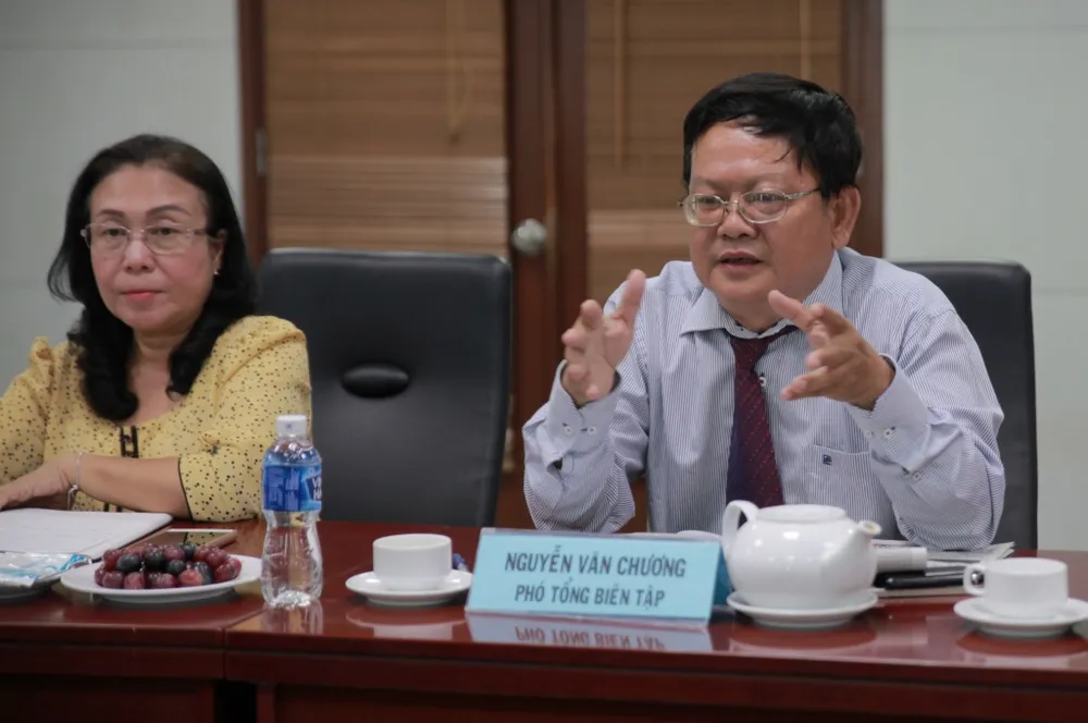 Đại diện Ban Biên tập báo Pháp Luật TP.HCM, Phó Tổng Biên tập Nguyễn Văn Chương đã giới thiệu khái quát lịch sử hình thành và phát triển của báo Pháp Luật TP.HCM.