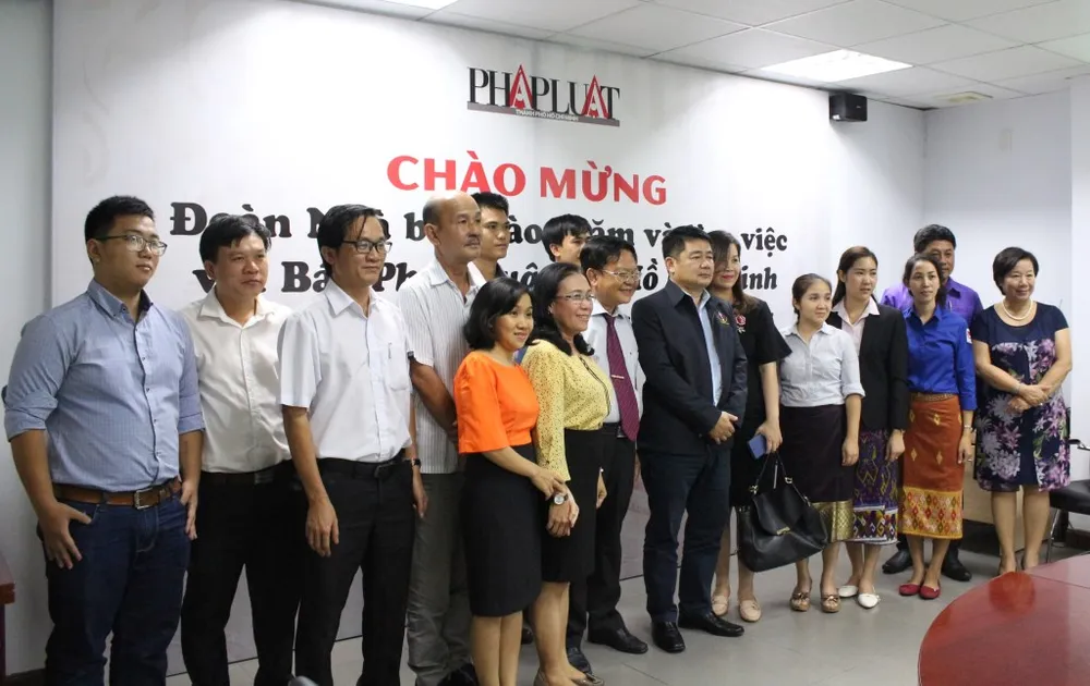 Đoàn nhà báo Lào chụp ảnh lưu niệm cùng đại diện báo Pháp Luật TP.HCM