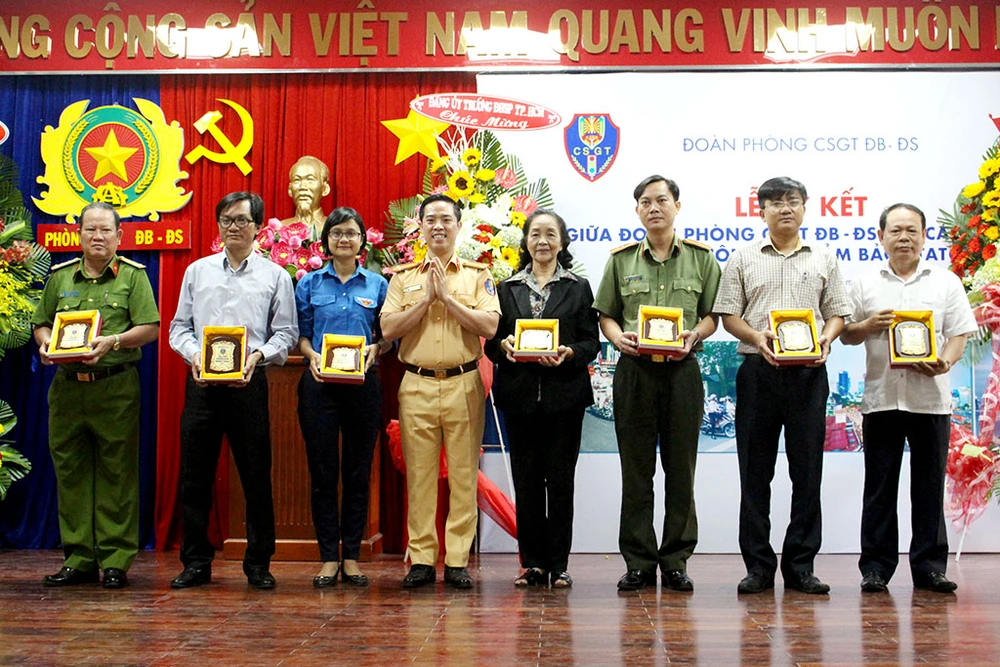 Sáng 18-3, Đoàn Phòng CSGT đường bộ - đường sắt (PC67) Công an TP.HCM tổ chức lễ ký kết với các đơn vị trong công tác đảm bảo trật tự an toàn giao thông (TTATGT) trên địa bàn TP.HCM.