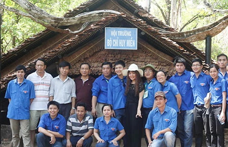 Đoàn tham quan hội trường bộ chỉ huy miền thuộc căn cứ địa Tà Thiết.