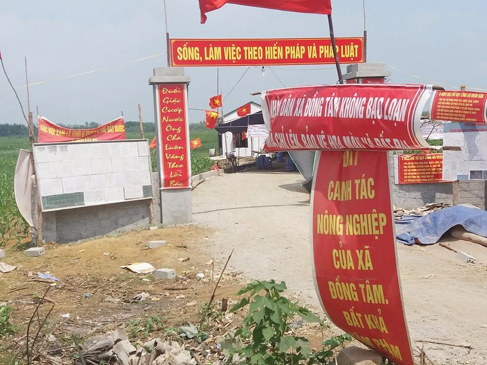 Vào ngày mai (27-4), người dân Đồng Tâm sẽ cho gỡ bỏ, thu dọn những băng rôn, khẩu hiệu... mà họ treo tại khu vực cánh đồng Sênh giáp với sân bay Miếu Môn. Ảnh: TP