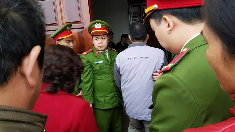 Mẹ Doãn Trung Dũng chờ làm thủ tục vào Tòa