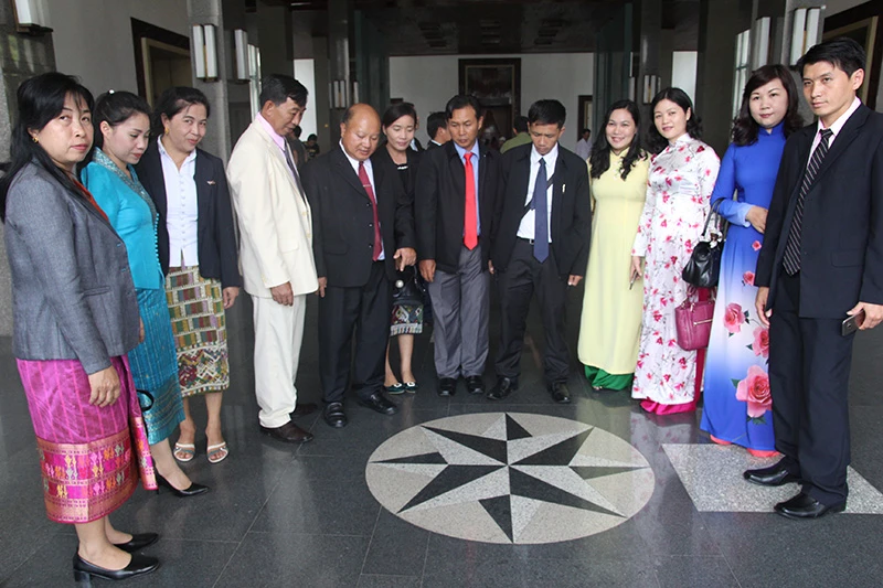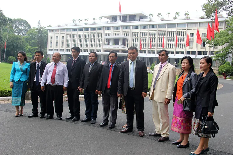 Đoàn Sở Tư pháp tỉnh Luang prabang (Lào) tham quan Dinh Độc Lập. Ảnh: HOÀNG GIANG