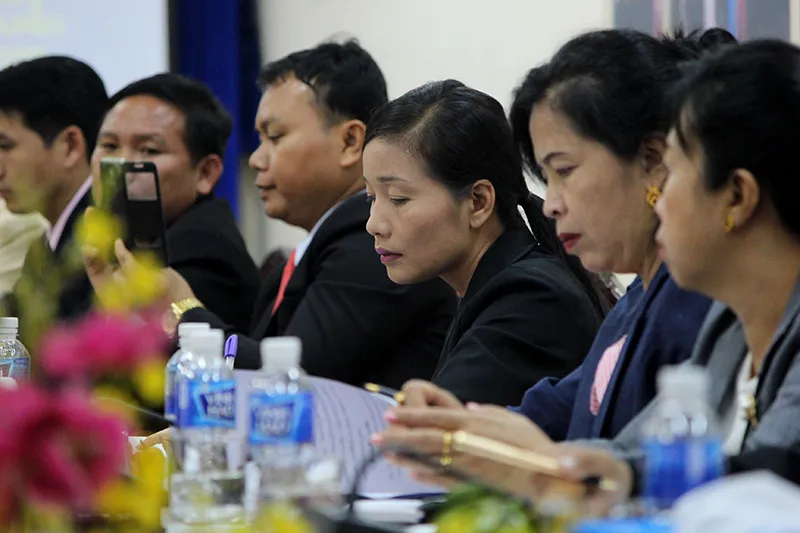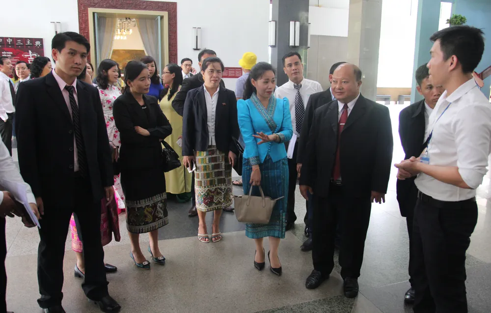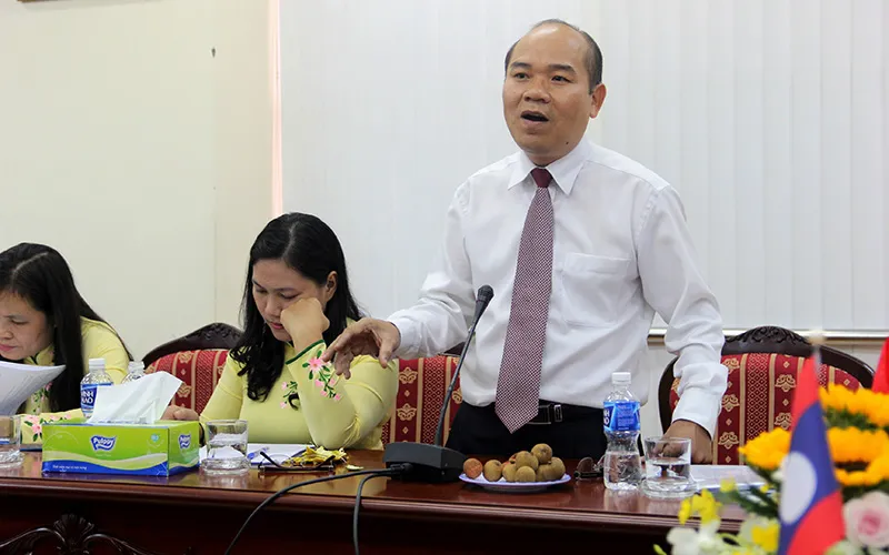 Giám đốc Sở Tư Pháp tỉnh Luang prabang (Lào) Myxay Xaycoyangchongtua đặt câu hỏi tham khảo mô hình tư pháp của Việt Nam. Ảnh: HOÀNG GIANG