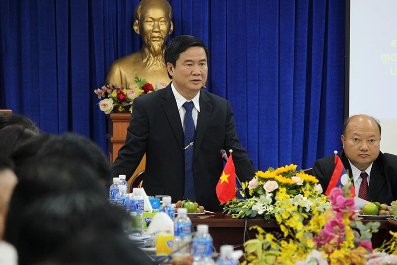 Phó Giám đốc Sở Tư Pháp TP.HCM Trần Văn Bảy trả lời các câu hỏi của phía nước bạn Lào. Ảnh: HOÀNG GIANG