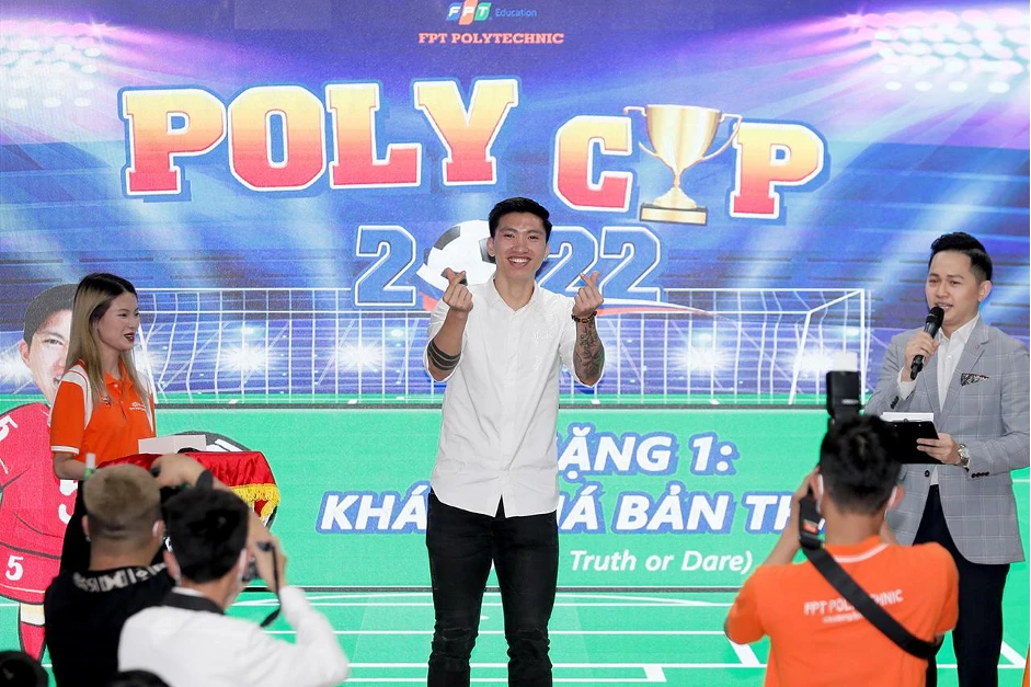 Bất ngờ xuất hiện, Đoàn Văn Hậu - Chàng trai vàng làng bóng đá Việt Nam đã có nhiều chia sẻ đáng nhớ tại một sự kiện thể thao của Trường Cao đẳng tại Hà Nội.