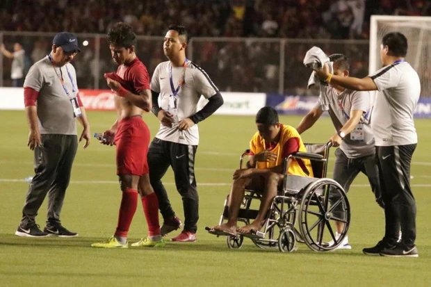Hình ảnh Evan Dimas được dìu ra sân giữa hiệp 1 sau va chạm với Văn Hậu tràn ngập trên báo chí Indonesia với những lời lẽ tức giận nhắm vào Văn Hậu.