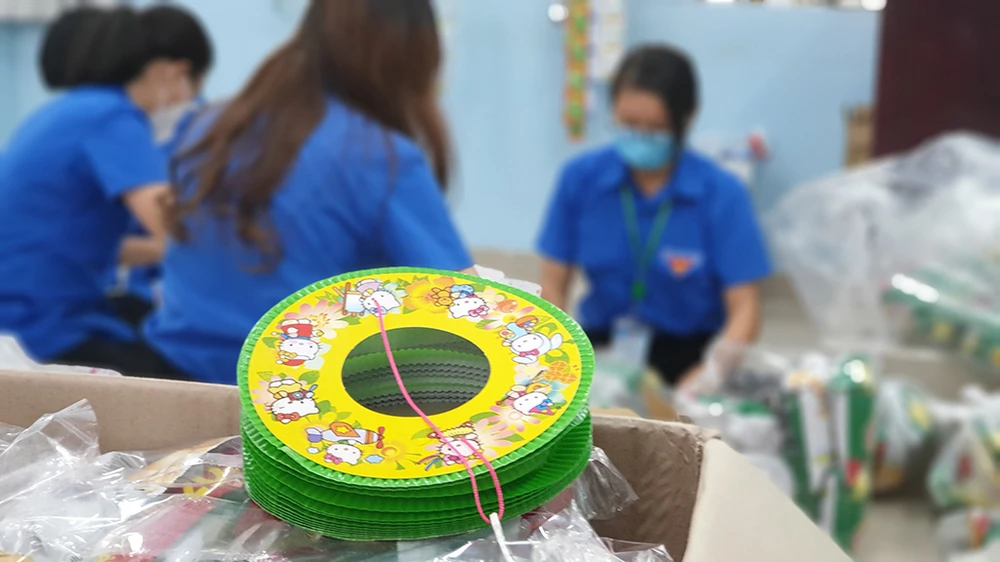 Phần quà gồm bánh kẹo, lồng đèn Trung thu đã được các đoàn viên chuẩn bị từ trước. Ảnh NT