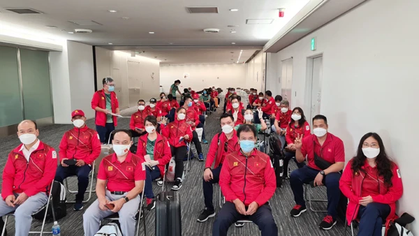 Ngay sau khi hạ cánh xuống sân bay Narita, 43 thành viên đoàn TTVN gồm các HLV, VĐV, chuyên gia,... tập trung tại một địa điểm và tiến hành làm xét nghiệm, kiểm tra y tế theo quy định về phòng chống dịch COVID-19. Mọi công việc diễn ra nhanh chóng, thuận lợi.