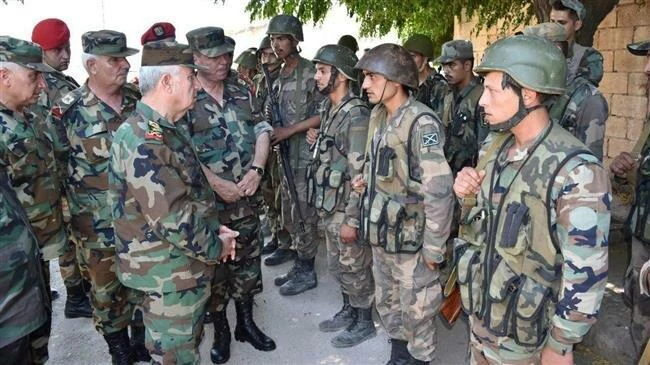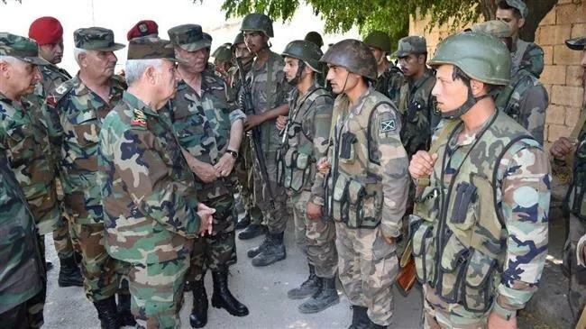 Bộ trưởng Quốc phòng Syria Ali Abdullah Ayyoub thăm binh sĩ ở al-Hobeit, tỉnh Idlib. Ảnh: REUTERS