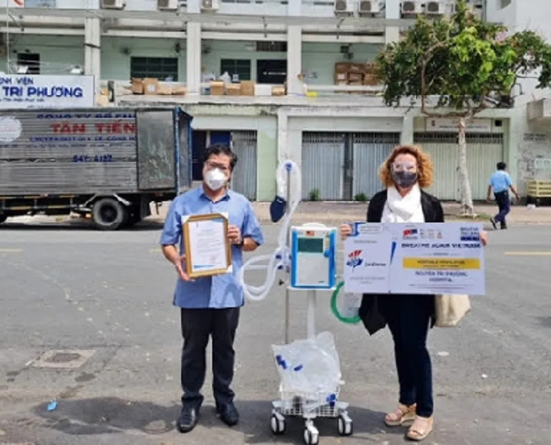 EuroCham đã chuyển một máy thở đến Bệnh viện Nguyễn Tri Phương tại TP.HCM. Ảnh: EuroCham