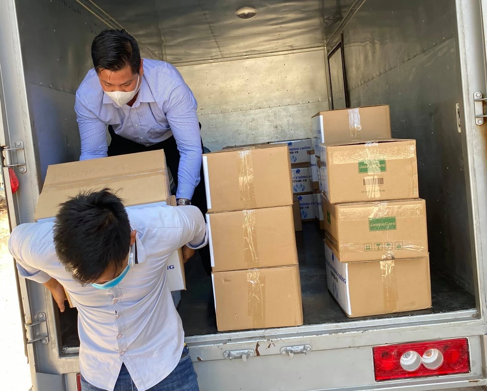 Khẩu trang y tế, dung dịch sát khuẩn được gửi đến tỉnh Bình Thuận. Ảnh: PV