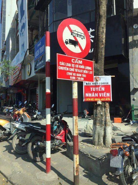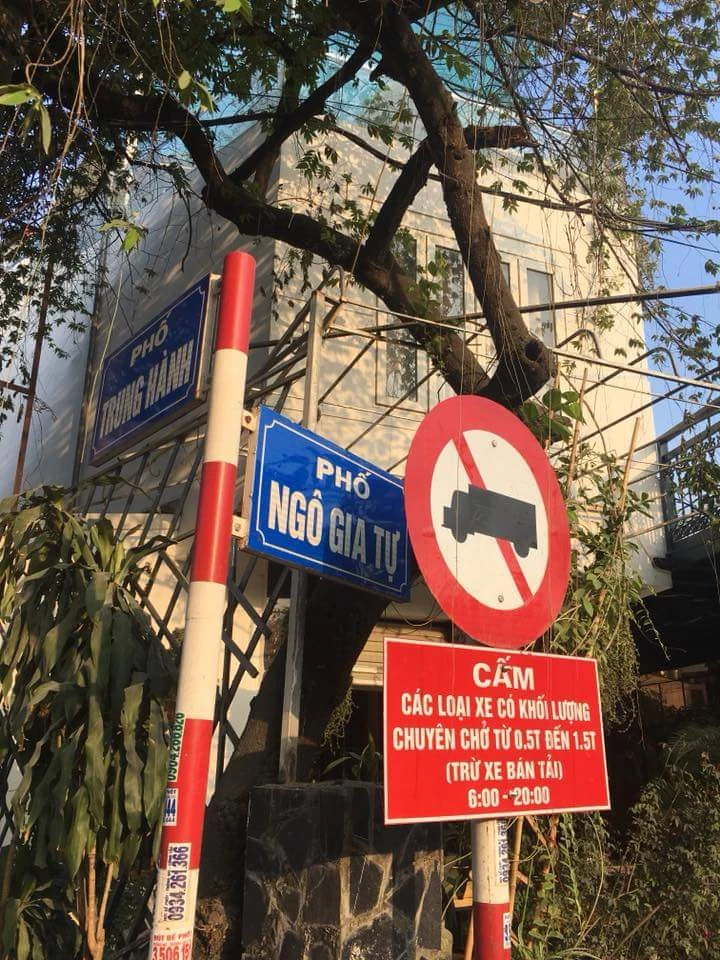 Biển cấm xe tải trên phố Lạch Tray.
