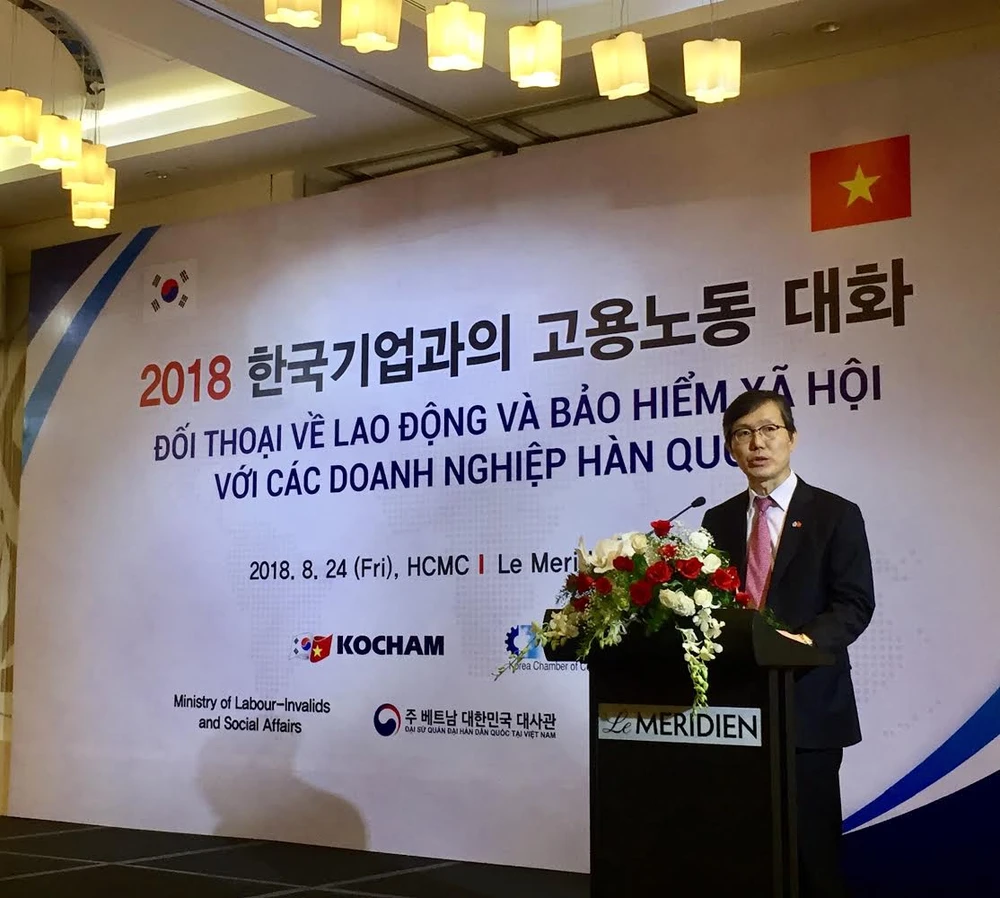 Đây là một trong số các kiến nghị Chính phủ của doanh nghiệp Hàn Quốc đang đầu tư tại Việt Nam. Thứ trưởng Bộ LĐ-TB&XH Doãn Mậu Diệp đã thông tin như vậy tại Đối thoại về pháp luật lao động, BHXH với doanh nghiệp Hàn Quốc tại TP.HCM, hôm qua, 24-8.