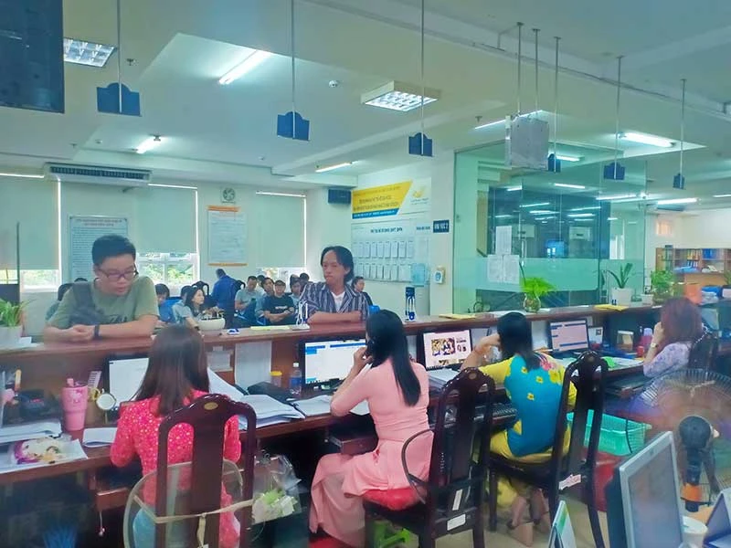 Người dân đang làm thủ tục liên quan đến BHXH tại BHXH TP.HCM. Ảnh: ĐỖ THUYÊN