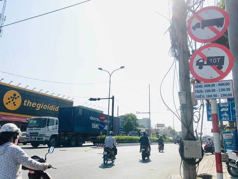 Để giải quyết tình trạng kẹt xe trên đoạn đường này (khoảng 1 km), hơn một tháng qua ngành chức năng đã quyết định cấm xe có tải trọng nặng lưu thông qua đây vào những giờ cao điểm. Cụ thể, cấm xe tải trên 10 tấn, xe container lưu thông vào các khung giờ: sáng từ 6 giờ đến 8 giờ, trưa từ 10 giờ 30 đến 13 giờ 30 và chiều từ 16 giờ đến 19 giờ. Thời điểm cấm bắt đầu từ ngày 13-1.